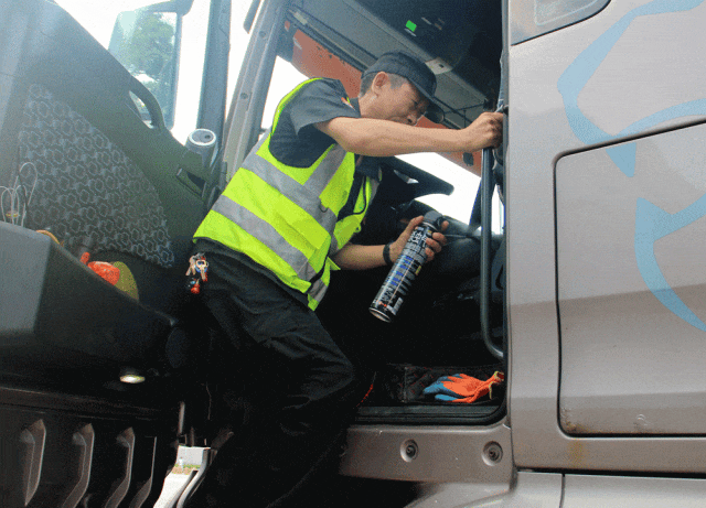 “我们园区每天都要面对大量外来车辆进出,为了保障园区的安全,每辆车入场前,我们都会对驾驶舱等关键区域进行全面消杀,确认无隐患后再予以放行。”拼多多物流园物业工作人员刘卫华说。